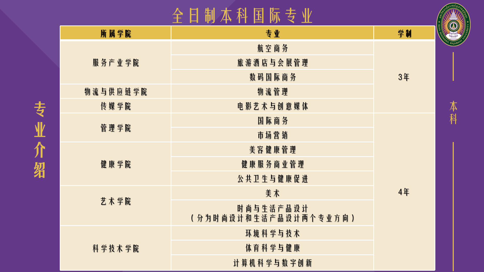 备注:请与国际教育中心联系获取最新的各专业开班情况
